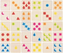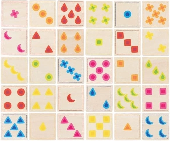 Jocul de acțiune culori și forme GOKI este un joc de observație dinamic, care distrează întreaga familie. Jucătorii concurează în viteză și precizie – cine găsește primul potrivirea corectă pe plăcuțele din lemn câștigă un punct. Datorită regulilor simple, copiii se implică ușor în joc și își exersează recunoașterea culorilor, formelor și numerelor.