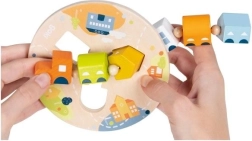 Introducerea și mutarea celor cinci vagoane cu forme diferite îi ajută pe copii să-și dezvolte prinderea, coordonarea mână–ochi și răbdarea.