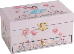 Elegantă cutie muzicală pentru bijuterii cu motiv de maci, care îi va încânta pe micii împătimiți ai accesoriilor și pe iubitorii de decorațiuni. La deschidere răsună melodia din baletul Lacul lebedelor, iar balerina începe să danseze în fața oglinzii. Compartimentele și sertarul practice facilitează organizarea clară a micilor comori.