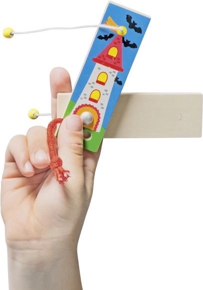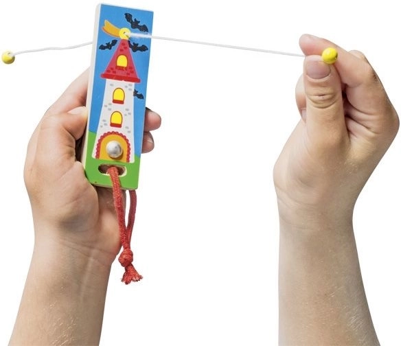 Această jucărie din lemn, cu un mecanism ingenios al sforii, le aduce copiilor bucuria descoperirii și antrenează concentrarea și îndemânarea degetelor. Datorită lemnului de calitate, este durabilă, ușoară și plăcută la atingere.