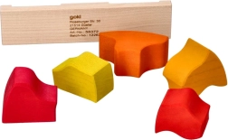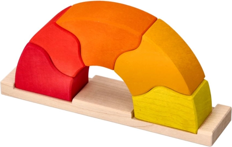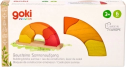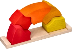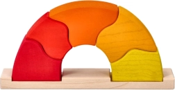 Puzzle-ul din lemn Răsărit de la GOKI oferă bucuria descoperirii pentru copii și părinți. Arcurile colorate în nuanțe de galben, portocaliu și roșu se așază pe o bază din lemn, invitând la experimentare, construcție și joc creativ liber. Jucăria dezvoltă natural coordonarea mână-ochi, răbdarea și principiile de bază ale echilibrului.