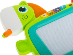 Tabla magnetică HOLA este o alegere excelentă pentru dezvoltarea creativității și a motricității fine. Datorită celor patru zone colorate, desenele apar în culori care îi încântă pe copii. Cu o singură mișcare a glisorului, suprafața se șterge și este gata pentru idei noi. Forma de căluț cu coamă luminoasă și sunete vesele îi motivează pe copii la joacă.
