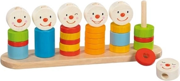 Puzzle-ul din lemn Goki este un instrument ideal pentru susținerea dezvoltării copilului. Copiii pot pune treptat cercurile colorate pe suporturi, îmbunătățindu-și coordonarea și recunoașterea culorilor.