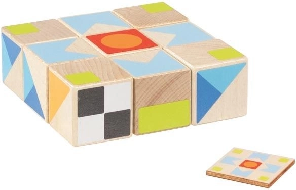 Descoperiți magia puzzle-ului din lemn Kubus II, care oferă o combinație unică de învățare și distracție. Asamblați 9 cuburi cu scopul de a crea un model conform șablonului de pe una dintre cele 25 de cărți din lemn. Jocul susține dezvoltarea orientării spațiale, gândirea strategică și creativitatea.