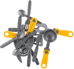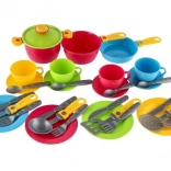 Set complet de veselă și ustensile pentru gătit, servire și „ceai de păpuși” – copiii au la îndemână tot ce le trebuie.