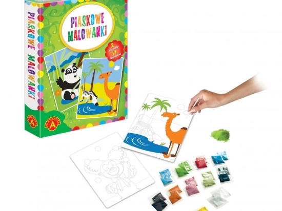 Descoperă distractiva pictură cu nisip cu motive de panda și cămilă, care le permite copiilor să creeze imagini colorate din nisip ușor și fără murdărie. Copiii dezvăluie părțile autoadezive și presară nisipul pe ele după șablon sau după propria imaginație. Activitatea dezvoltă motricitatea fină, coordonarea mână–ochi, răbdarea și creativitatea, susținând în același timp încrederea în sine chiar și la copiii fără experiență artistică.