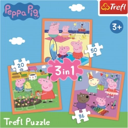 Peppa Purcelușa isteață este un set unic cu trei puzzle-uri separate pentru copii care iubesc aventurile cu Peppa. Acest set este o modalitate excelentă de a învăța copiii să rezolve problemele creativ și jucăuș.