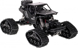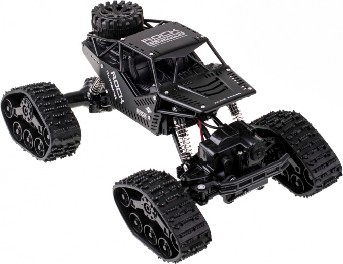 Mașină RC off-road distractivă și rezistentă, cu tracțiune 4x4, roți interschimbabile cu șenile din cauciuc și telecomandă 2,4 GHz. Datorită suspensiei pe arcuri și anvelopelor mari din cauciuc, face față diverselor suprafețe. Controlul ușor este ideal pentru începători și copii de la 6 ani.