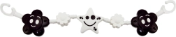 Barieră suspendată alb-negru, cu flori și steluță, care atrage atenția bebelușului și îl distrează la plimbare. Se atașează ușor cu cârlige de cărucior sau pătuț.
