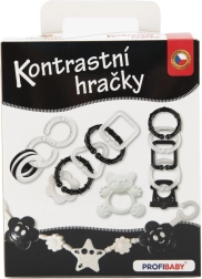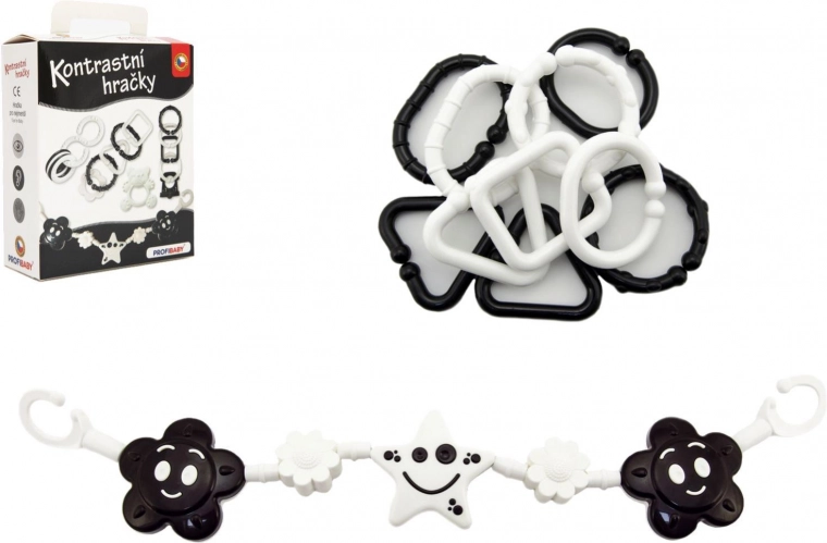Acest set cu contrast, în variantă alb-negru, este conceput pentru cei mai mici bebeluși, care încă nu disting culorile. Modelele cu contrast ridicat atrag în mod natural atenția și sprijină stimularea vizuală și concentrarea. Datorită formelor bine gândite, jucăriile sunt ușor de apucat de mânuțele mici și ajută la exersarea reflexului de prindere și a coordonării mână–ochi.