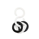 Ochiuri din silicon interconectabile, cu relief, masează gingiile, sprijină simțul tactil și permit o prindere ușoară. Cârligele în S fixează jucăriile de cărucior sau de scaunul auto.