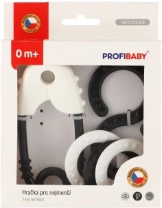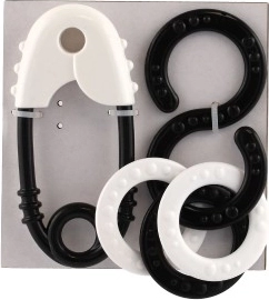 Set de jucării zornăitoare alb-negru, ideal pentru stimularea văzului și auzului copiilor mici. Dimensiune perfectă pentru mâinile copiilor.