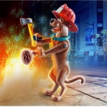 Scooby, în echipament de pompier, este pregătit să stingă orice incendiu și să salveze orașul. Setul include figurina Scooby, o cască de pompier și alte accesorii, datorită cărora copiii pătrund cu ușurință în lumea misiunilor de salvare. Piesele sunt din plastic de calitate, igienic și ușor de curățat, care rezistă în timp.