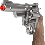 Datorită mânerului ergonomic, revolverul se potrivește confortabil chiar și mâinilor mai mici. Este o alegere excelentă pentru costume de carnaval, jocuri de-a polițiștii și ca recuzită stilată pentru camera copiilor.