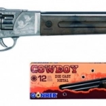 Această pușcă metalică de cowboy cu tambur pentru 12 cartușe este ideală pentru jocuri tematice, costume și expoziții de colecție. Construcția robustă din metal și execuția atentă marca Gonher oferă jucăriei un aspect autentic și o durată de viață îndelungată.