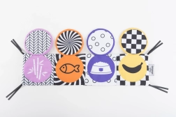Modelele grafice alb-negru, simple, susțin concentrarea nou-născuților și stimulează natural percepția vizuală.