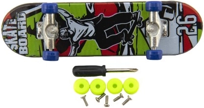 Bucură-te de ore nesfârșite de distracție cu skateboardul nostru deget. Datorită dimensiunii compacte, este ușor de transportat și îl poți avea mereu la îndemână. Acest skateboard este conceput pentru copiii peste 3 ani și oferă: