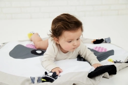 Covorașul senzorial de joacă Panda GAGAGU este conceput pentru joacă confortabilă și sigură încă din primele luni. Datorită culorilor contrastante, capitonării moi și materialelor atent alese, ajută la dezvoltarea vederii, a simțului tactil și a motricității fine. Designul drăgălaș al pandei încălzește atmosfera oricărei camere de copil.