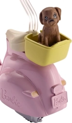 Descoperă lumea poveștilor cu scuterul iconic BARBIE, care te invită la noi plimbări și mari aventuri. Datorită prinderii speciale, păpușa rămâne stabilă în timpul mersului, iar cățelușul călătorește confortabil și în siguranță în coșul galben din spate.