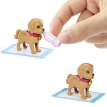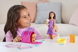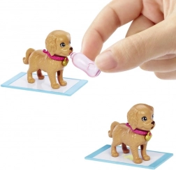 Setul de joacă Barbie Îngrijirea cățeilor încurajează îngrijirea și atenția față de animale. Conține păpușa Barbie, doi căței și accesorii cu funcția de schimbare a culorii.