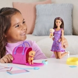 Păpușa Barbie cu genunchi flexibili permite o joacă realistă și îngrijirea noilor animăluțe.