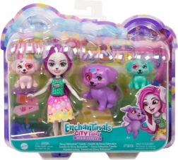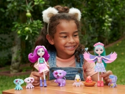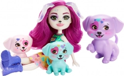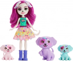 Intrați în lumea magică a Enchantimals cu păpușa Dessa Dalmatian și prietenii ei dalmațieni. Acest set oferă divertisment variat și interactiv pentru toți iubitorii de păpuși. Dessa poartă un top original, fustă în tonuri roz și pantofi violeți. Susține dezvoltarea jocului imaginativ și creează povești pline de prietenie și distracție.