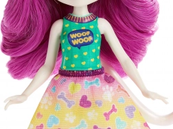 Păpușa Dessa Dalmatian se mândrește cu părul lung violet și hainele vii, permițând copiilor să își exprime creativitatea în timpul jocului.