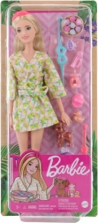 Păpușa Barbie® știe că cel mai bine este să îți oferi cea mai bună îngrijire! Acest set cu păpușă și accesorii celebrează modul preferat al lui Barbie® de a-și reîncărca bateriile la spa! Păpușa Barbie® Wellness la spa poartă un halat drăguț cu imprimeu de lămâi și este dotată cu tot ce are nevoie pentru o zi relaxantă la spa, inclusiv săpunuri de baie, perii, lumânări și o mască pentru ochi – are chiar și o mască pentru ochi pentru cățelușul ei! Păpușa nu poate sta în picioare fără sprijin. Culorile și aspectul produsului pot varia. Vârsta 3+