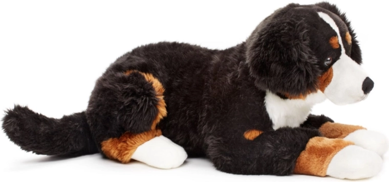 Acest pluș moale, inspirat de rasa câinele bernese, impresionează prin coloritul tricolor autentic și expresia plăcută. Datorită lungimii generoase de aproximativ 65 cm (fără coadă) este ideal pentru îmbrățișat, decorarea camerei sau ca însoțitor de călătorie.