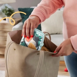 Ușor, moale și ușor de depozitat. Îl pliezi în geantă și, cu ajutorul buclei, îl prinzi de cărucior – joacă senzorială oriunde.