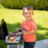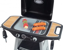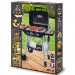 Prezentăm grătarul de jucărie pentru copii de la marca renumită Smoby, care aduce bucurie și distracție tuturor micilor iubitori de gătit. Acest grătar este echipat cu 18 accesorii autentice, printre care se numără hamburger, frigăruie, clește pentru grătar, aprinzător sonor și râșniță pentru sare și piper. Cu acest echipament, copiii pot experimenta senzatia reală de grătar.