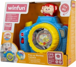 Aparat foto cu maimuțică pop-up este o jucărie uimitoare pentru copii de la 9 luni, care combină distracția cu educația. Acest aparat foto jucăuș cu lumini colorate și sunete este ideal pentru dezvoltarea abilităților senzoriale ale copilului.