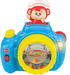 - Sunete și melodii dinamice: Când apeși pe maimuțică, se aud melodii și sunete care imită sunetul unui aparat foto.