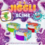 Jiggle Slime este alegerea ideală pentru toți copiii și adulții care caută un mod creativ de a petrece timpul liber. Datorită rețetei sale unice se scutură ca o gelatină și de asemenea este extensibil ca guma. Culorile vii și mirosul apetisant de măr verde stimulează simțurile și oferă distracție pentru ore îndelungate.
