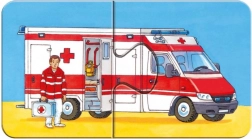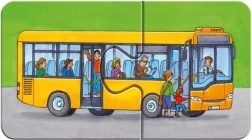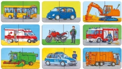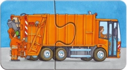 Setul conține 9 puzzle-uri separate, fiecare din 2 piese, cu motive precum pompier, gunoier, excavator, combină, autobuz sau motocicletă. Datorită numărului redus de piese, asamblarea este ideală pentru primele experiențe cu puzzle-urile și susține dezvoltarea corectă a abilităților.