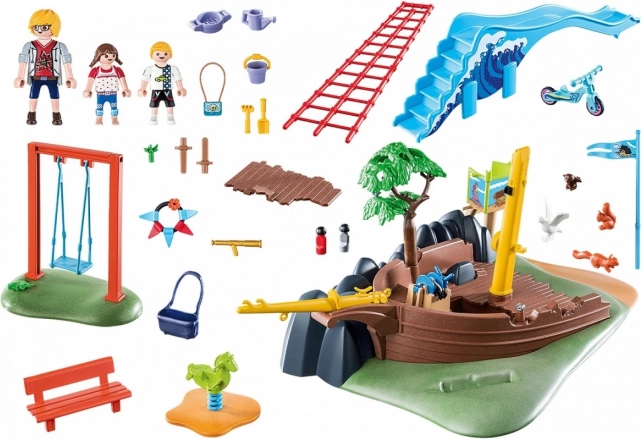 Impresionantul loc de joacă pentru copii în stilul unei epave de pirați transformă fiecare zi într-o expediție plină de aventură. Copiii se pot cățăra, aluneca, legăna și inventa povești cu marinari și pirați. Datorită dotării bogate cu figurine și accesorii, setul susține jocul social și dezvoltarea abilităților.