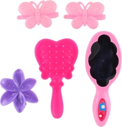 - Accesorii complete – oglindă, agrafe și pieptene pentru coafat.