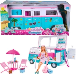 Păpușa Steffi cu rulotă Steffi Love este cadoul ideal pentru toți micii fani ai jocurilor de călătorie și aventură. Această rulotă superbă este complet echipată cu bucătărie extensibilă, living, pat și masă pentru experiențe de joacă realiste. De asemenea, include diverse accesorii care le permit copiilor să-și dezvolte creativitatea și să se bucure de momente de distracție de neuitat.