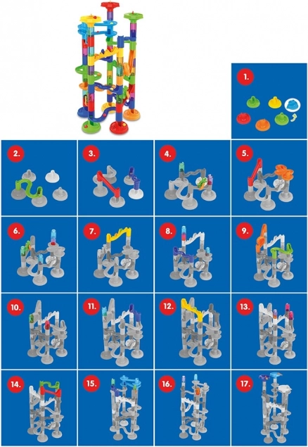 Descoperă distracția nesfârșită cu setul de pistă cu bile cu 78 de piese! Acest set creativ le permite copiilor să construiască diverse piste pentru bile, dezvoltându-le gândirea logică și motricitatea fină.