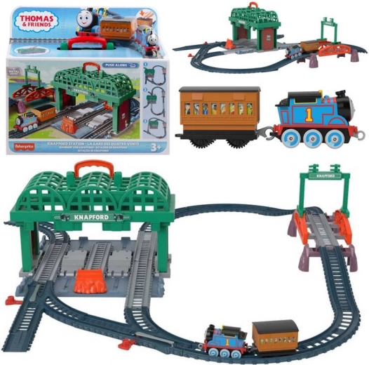 Trăiți lumea Insulei Sodor cu setul Stația Knapford de la Fisher‑Price. Copiii își construiesc o linie cu stație, pod și pasaj superior, pe care pornește locomotiva THOMAS pe împins cu vagon de pasageri. Prin apăsarea acoperișului, în vagon „apar” pasagerii – un element ideal pentru crearea propriilor povești și dezvoltarea imaginației.