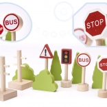Toate piesele acestui set sunt fabricate din lemn de calitate cu colțuri rotunjite, asigurând siguranța și durabilitatea în timpul jocului.