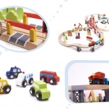 Circuitul de tren din lemn este jucăria ideală pentru copii, permițând crearea de diferite peisaje și scenarii. Setul conține un total de 70 de piese, care oferă nesfârșite posibilități de construire și joacă. Joaca cu acest circuit dezvoltă abilitățile motorii fine, coordonarea ochi-mână și gândirea logică.