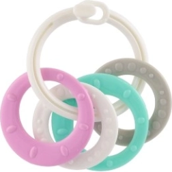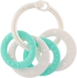 Potrivit pentru copii de la 3 luni, acest set de jucării de masticație conține inele din plastic colorate care nu sunt doar ușoare, ci și ajută la dezvoltarea abilităților motorii fine. Datorită diversității de structuri și forme, această jucărie oferă multiple stimulente senzoriale, concepute pentru perioada de erupție dentară a copilului.