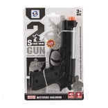 Pistol de jucărie din plastic, lungime 17 cm, care după introducerea bateriilor se aprinde și emite sunete. Ideal pentru micii aventurieri de la 3 ani. Bateriile sunt incluse în pachet, astfel încât copiii pot începe să se joace imediat.
