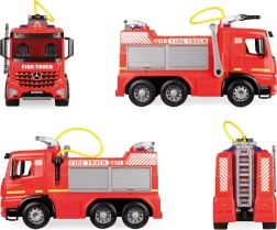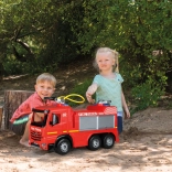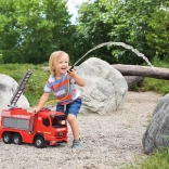 Detaliile practice, precum duza rotativă și detașabilă de pe acoperiș, scara extensibilă și maneta laterală ușor de operat susțin jocul activ și coordonarea. Jucăria este sigură, testată și potrivită pentru utilizare în interior și exterior.