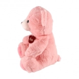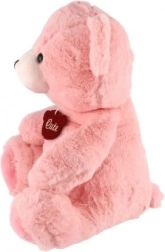 Ursulețul de pluș roz este realizat din material moale, ideal pentru îmbrățișări și oferind un sentiment de siguranță.