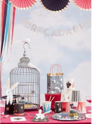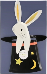 Descoperiți farfuriile de hârtie fermecătoare Abracadabra de la MERI MERI, care transformă petrecerea într-un spectacol magic. Motivul iepurașului în joben îi va încânta atât pe copii, cât și pe adulți și se potrivește perfect unei tematici de magie sau circ. Datorită execuției atente și aspectului atrăgător, farfuriile vor fi nu doar practice, ci și decorative.