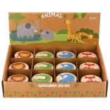 Acest set de 12 yo-yo-uri din lemn aduce un joc atemporal într-o interpretare modernă și veselă. Fiecare yo-yo are o suprafață netedă, naturală, și o imprimare colorată cu animăluțe, care îi cucerește pe copii din prima clipă. Datorită dimensiunii plăcute de 5,5 cm, se ține bine în mână și se manevrează ușor chiar și de către mâinile mici ale copiilor.