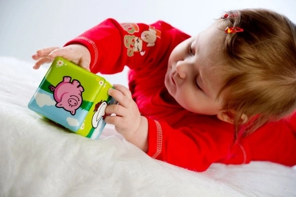 Datorită dimensiunii compacte de 7 × 7 cm, cubul se potrivește perfect în mâinile mici, ajutând la exersarea prinderii și a coordonării mână–ochi. Motivele vesele cu animale dezvoltă imaginația și îi susțin pe părinți și copii în joaca și învățarea împreună.
