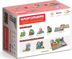 Setul de construcții Magformers Orășel Cofetărie este compus din 14 forme magnetice și 8 accesorii funcționale. Permite crearea de construcții arhitecturale diverse ale cofetăriilor conform imaginației proprii. Adăugând alte piese Magformers, construcțiile tale vor fi și mai mari și mai diverse. Construcțiile finale au forma unei secțiuni parțial deschise, unde sunt vizibile atât soluțiile exterioare, cât și cele interioare, care pot fi modificate.